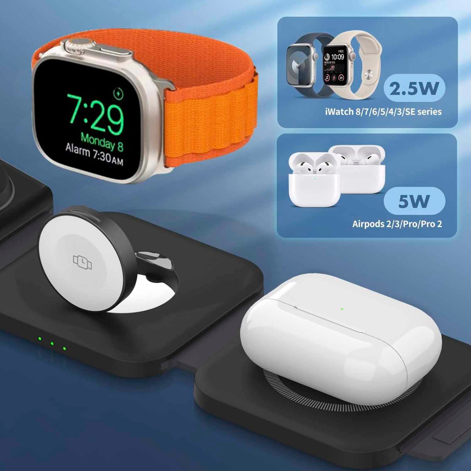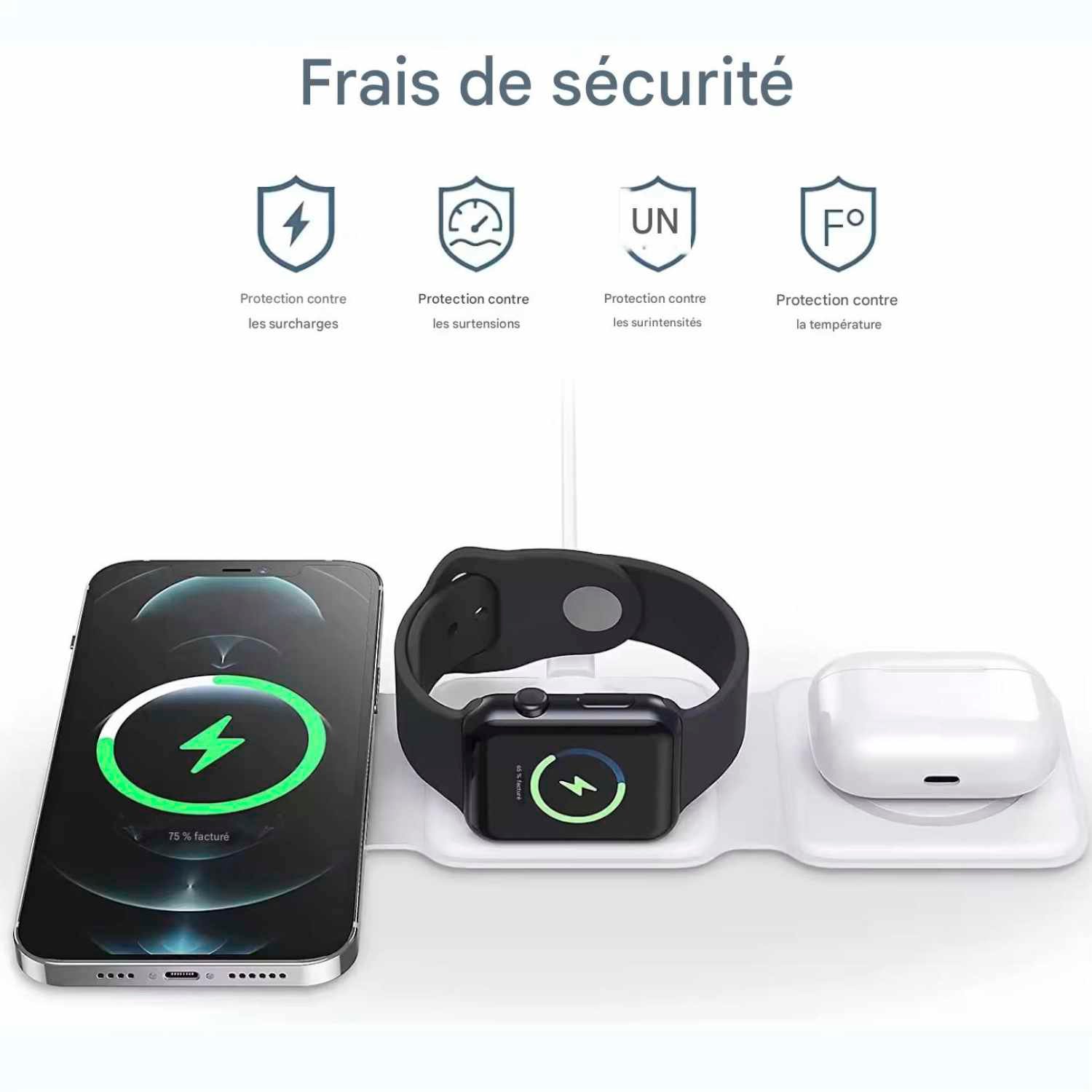 Bon et agréable pour le prix. La montre charge parfaitement même que les AirPods. le telephone charge parfaitement aussi merci