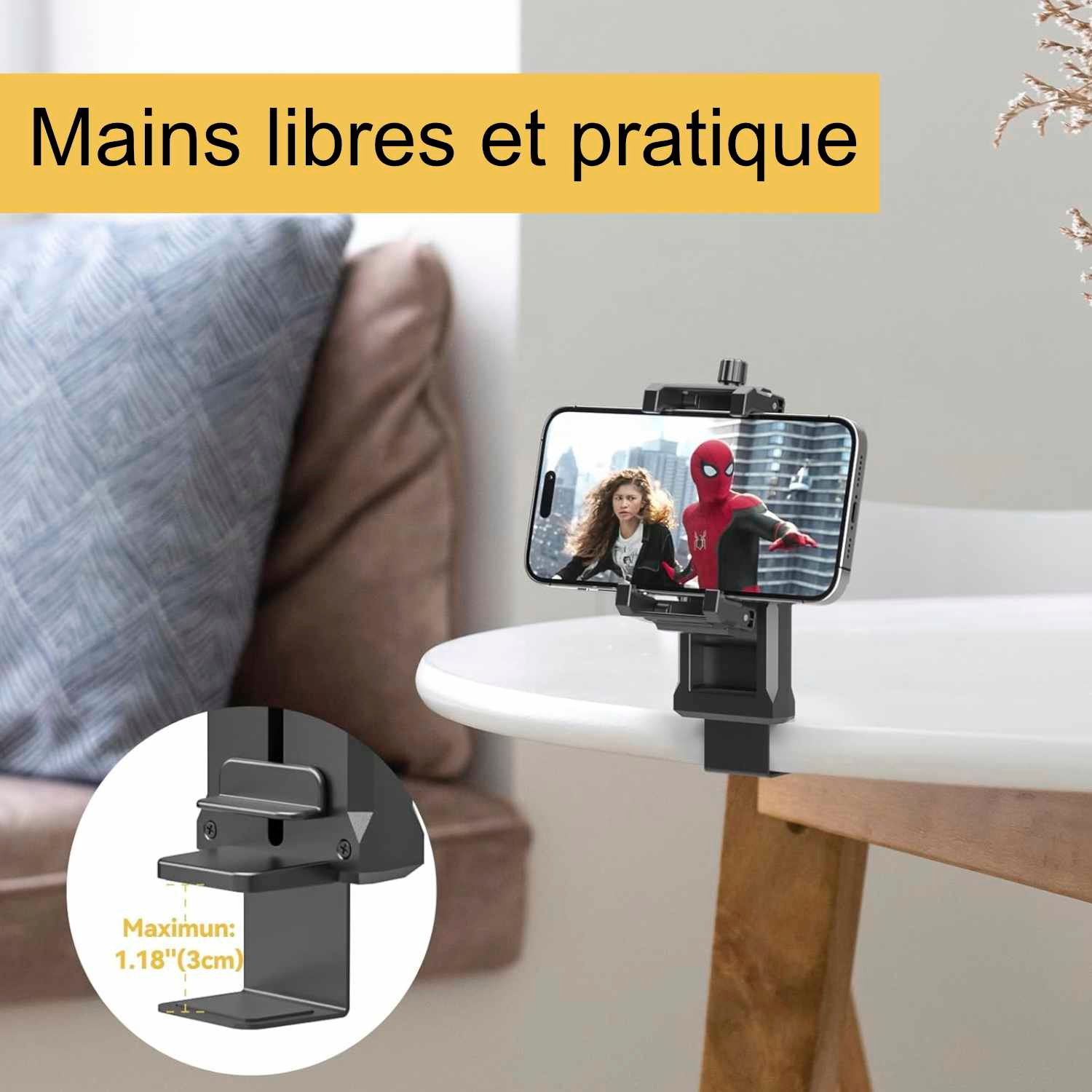 📱 Le support de téléphone universel s’adapte à tous les modèles de smartphones.